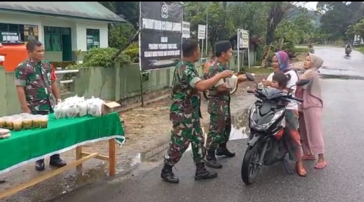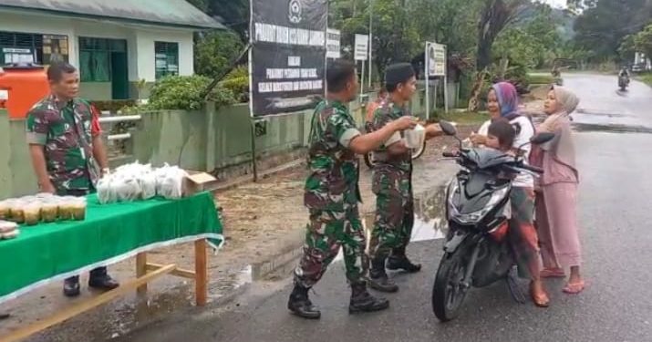 Plh Danramil 05/Kolang, Letda Inf Beringin Limbong pimpin kegiatan pembagian takjil ke Pengendara di depan Makoramil, Jalan Sibolga-Barus Kolang, Kabupaten Tapanuli Tengah.