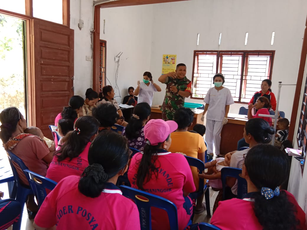 “Pelayanan Posyandu yang digelar meliputi, pemeriksaan tinggi badan Balita, penimbangan berat badan, evaluasi tumbuh kembang Balita, penyuluhan dan konseling tumbuh kembang, serta pemberian tambahan gizi dan vitamin untuk Balita,” tutur Letda Inf Beringin Limbong.