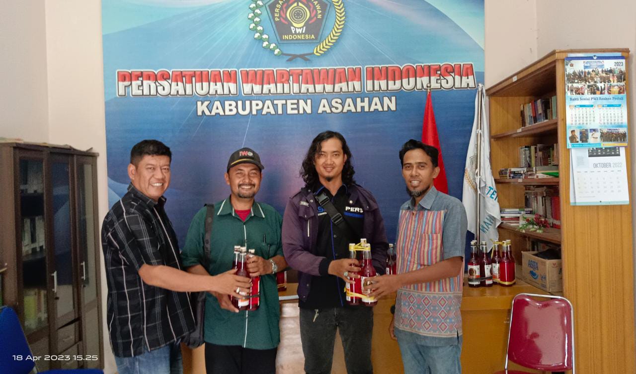 TASLABNEWS, ASAHAN – Persatuan Wartawan Indonesia (PWI) Kabupaten Asahan bagi -bagi sirup kurnia kepada wartawan, Selasa (18/04/2023) di kantornya di Jalan Lintas Sumatera Nomor 43, Kelurahan Sei Renggas, Kecamatan Kisaran Barat, Kabupaten Asahan, Sumatera Utara.