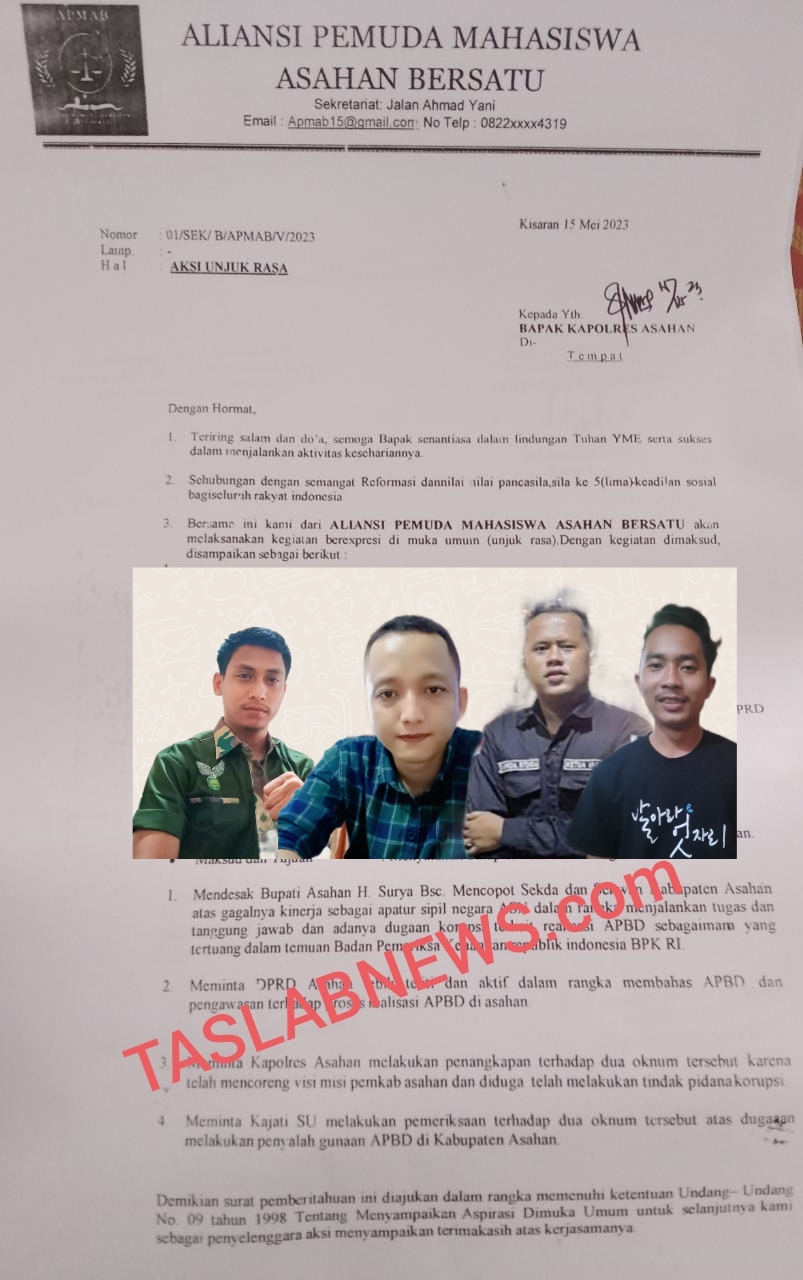 TASLABNEWS, ASAHAN- Gabungan aliansi mahasiswa dan pemuda di Kabupaten Asahan meminta Bupati Asahan untuk mencopot jabatan Sekdakab Asahan Drs Jhon Hardi Nasution MSI.