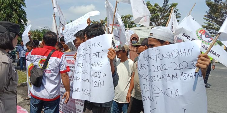 TASLABNEWS, ASAHAN -Puluhan massa dari Lembaga Swadaya Masyarakat Pemuda Mandiri Peduli Rakyat Indonesia (LSM PMPRI) Kabupaten Asahan “geruduk” kantor Bupati Asahan, Rabu (3/5) sekitar pukul 10:20 Wib.