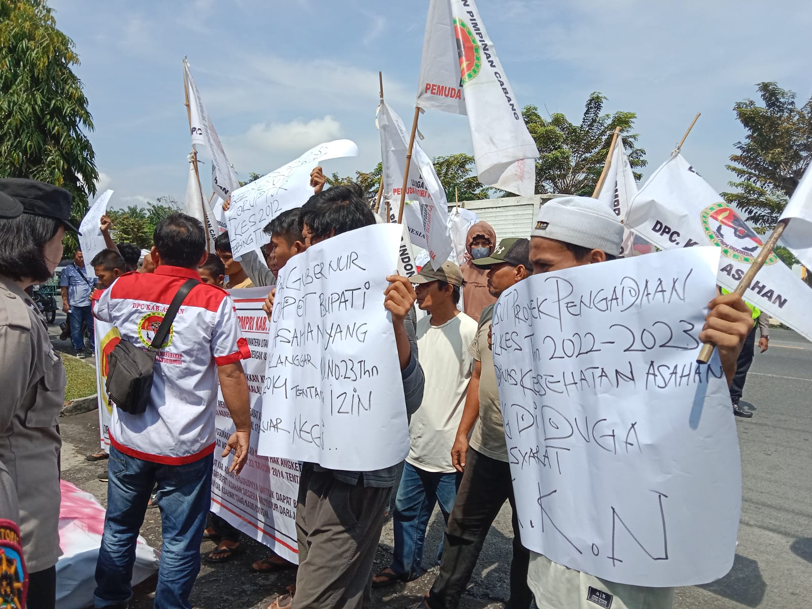 “Kami minta Bupati Asahan H. Surya Bsc untuk segera mundur dari jabatannya. Karena Bupati telah melanggar UU No 23 Tahun 2014 Tentang Izin Keluar Negeri Kepala Daerah. Maka itu, kami juga meminta dan mendesak Presiden RI, Mendagri dan Gubernur Sumut untuk segera mencopot Bupati Asahan. Karena pergi keluar negeri tanpa adanya izin, ” teriak Adha Khairuddin dalam orasinya di depan kantor Bupati Asahan.