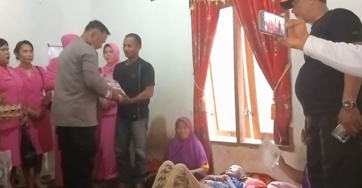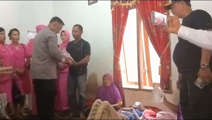 Didampingi Kepala Desa Serdang Guntur Gunawan, Kapolsek Kisaran Kota Dan ibu Bayangkari beserta anggota melihat langsung kondisi dari Yeni.