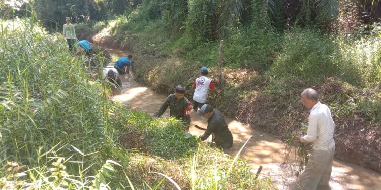 TAPTENG, TASLABNEWS – Aksi peduli lingkungan, Babinsa Koramil 02/Sorkam, Serda Carly Hutabarat bersama warga, melaksanakan gotong royong membersihkan lingkungan. Bertempat di Desa Unte Mungkur IV, Kecamatan Kolang, Kabupaten Tapanuli Tengah, Kamis (22/06/2023).