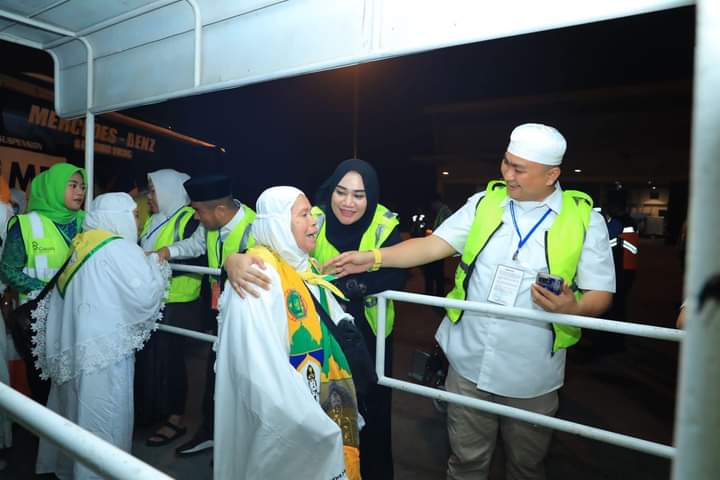 “Pada hari ini saya merasa bahagia karena dapat bertemu dan berkumpul dengan tamu-tamu Allah SWT, yang sesaat lagi akan menuju tanah suci Mekkah,” ucap bupati.