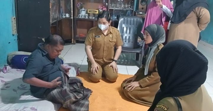 TASLABNEWS, ASAHAN -Setelah mendengar salah seorang warganya sakit kulit, Camat Meranti Sugeng Surya Saragih bersama ketua tim penggerak PKK kecamatan dan Kapus Meranti, Senin (05/06/2023) sekira pukul 10.00 wib mengunjungi Zainal Abidin Panjaitan (48) yang menderita sakit kulit selama 6 tahun di Dusun 1 Desa Sei Beluru, Kecamatan Meranti, Kabupaten Asahan Sumatera Utara.