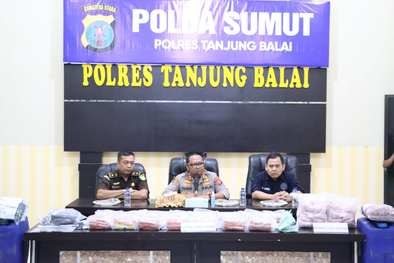 Hal itu terungkap saat press release kasus narkotika jenis sabu dan ekstasi di Aula Pesat Gatra Polres Tanjungbalai, Selasa (08/08/23) sekira pukul 10.20 wib.