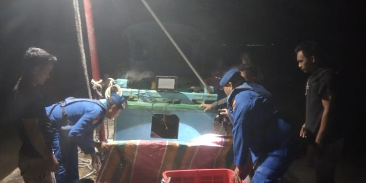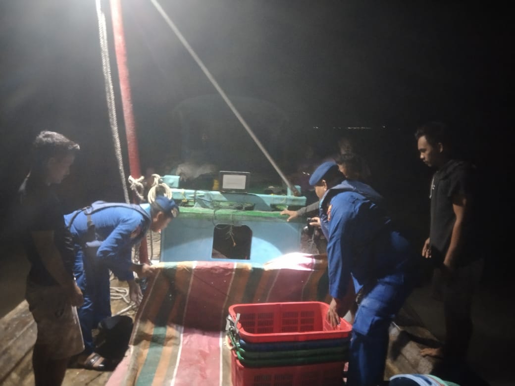Setelah dilakukan pemeriksaan, akhirnya diketahui kapal yang tidak memiliki nama dan tanpa tanda selar itu di nakhodai dengan jumlah penumpang lima orang, bermuatan fiber berisi ikan namun tidak ada di temukan barang-barang yang ilegal atau yang melanggar hukum.