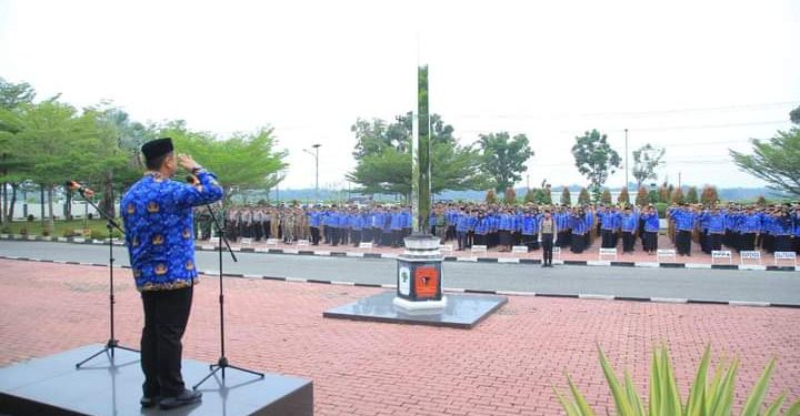 TASLABNEWS, LABURA-Bupati Labuhanbatu Utara (Labura), Hendriyanto Sitorus SE MM, menjadi Inspektur Upacara (Irup) pada pelaksanaan upacara peringatan hari Kesaktian Pancasila di halaman kantor bupati, Aek Kanopan, Minggu pagi (1/10/2023).