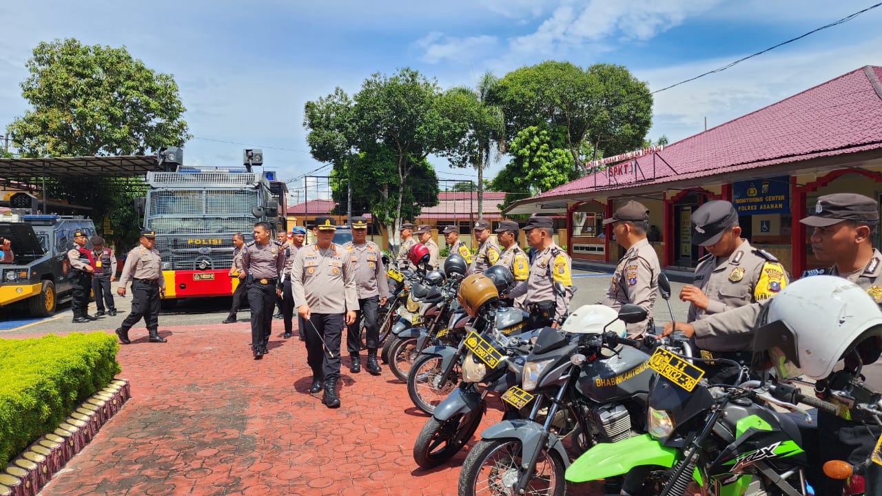 Pemantauan ini dalam rangka kesiapsiagaan pengamanan pemilu 2024 yang dilaksanakan di lapangan Apel Polres Asahan, Senin (16/10/2023).