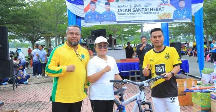 TASLABNEWS, LABURA-Dalam rangka memperingati HUT Korps Pegawai Republik Indonesia (Korpri) ke 52 tahun, Bupati Labuhanbatu Utara (Labura) Hendriyanto Sitorus SE MM, bersama ratusan Aparatur Sipil Negara (ASN) di lingkungan Pemerintah Kabupaten Labura melaksanakan gerak jalan santai hebat.