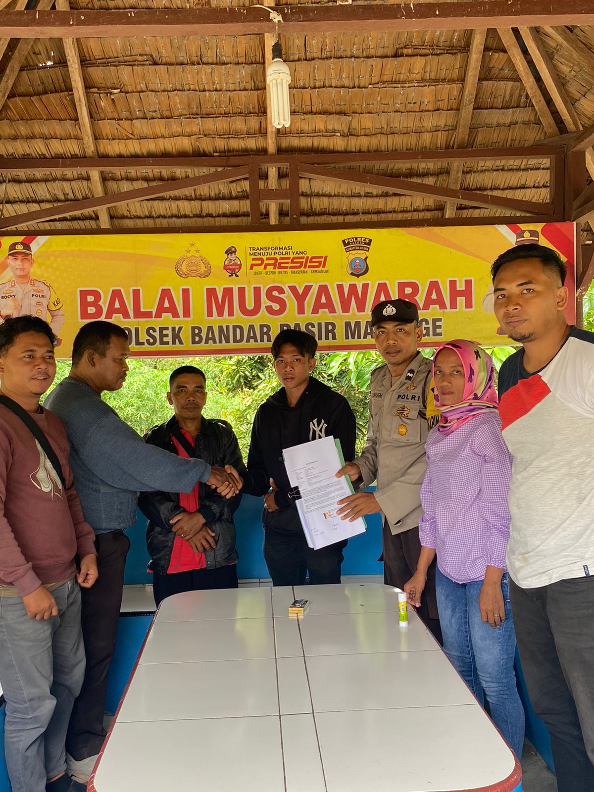 Kapolsek Bandar Pasir Mandoge AKP Juni Hendrianto mengatakan, penyelesaian perkara pencurian tandan buah kelapa sawit akhirnya dipertemukan antara kedua belah pihak sehingga permasalahan tersebut dapat diselesaikan dengan cara berdamai.