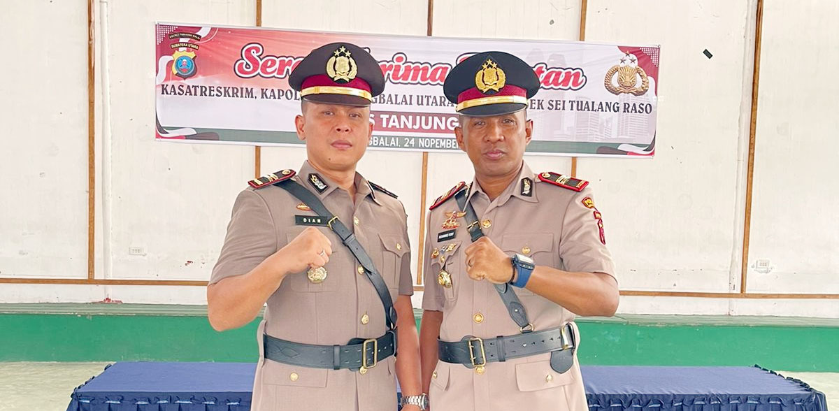 TASLABNEWS, ASAHAN – Dua perwira Polres Asahan yang berkarir di reserse kriminal dan tidak segan bertindak tegas dan terukur terhadap pelaku kejahatan dilantik Kapolres Tanjungbalai, AKBP Ahmad Yusuf Afandi menjadi Kapolsek di di Tanjungbalai Utara dan Kapolsek Sei Tualang Raso, Jumat (24/11/2023).