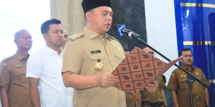 Sebanyak 387 PNS dengan rincian 276 orang beragama Islam, 101 beragama Kristen dan 10 orang beragama Katolik melaksanakan pengambilan sumpah/janji pegawai negeri sipil (PNS) pada lingkungan pemerintah Kabupaten Labuhanbatu, di Aula Rumah Dinas Bupati Labuhanbatu jalan WR. Supratman Rantauprapat Kecamatan Rantau Utara Senin (12/12/2023).