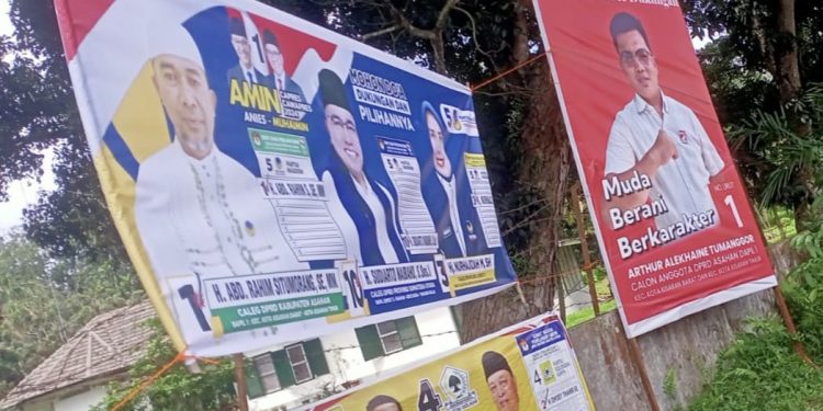 TASLABNEWS, ASAHAN-Meski sudah banyak keluhan warga Kota Kisaran terkait maraknya alat peraga kampanye (APK) caleg yang melanggar aturan, namun Bawaslu terkesan tak peduli dan belum melakukan penindakan. Warga Berharap APK caleg yang dipaku di pohon segera diterbitkan.