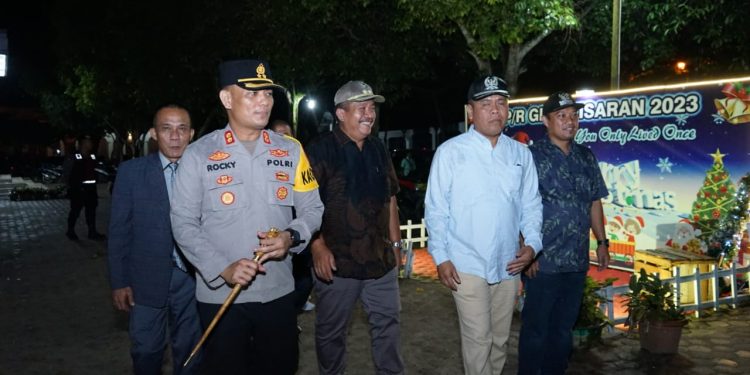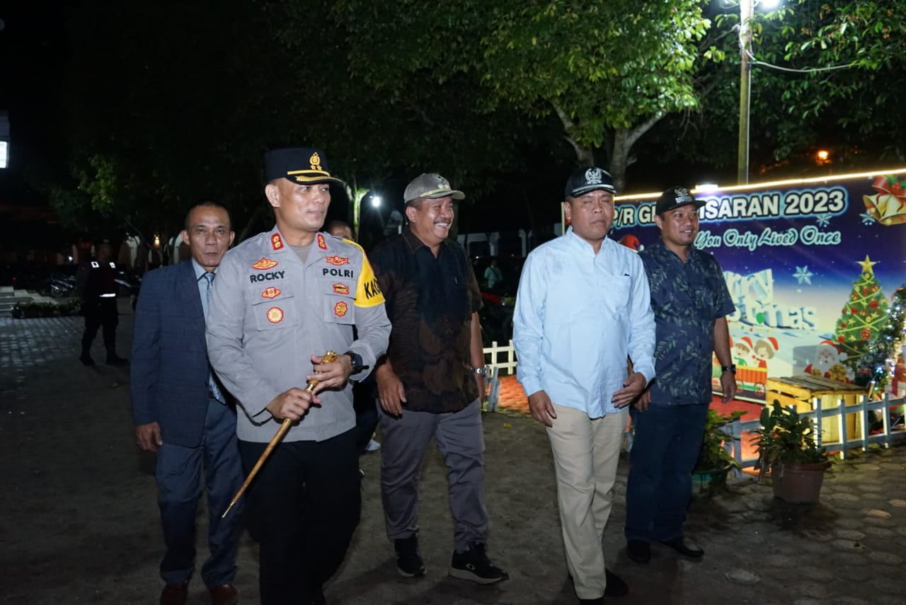 TASLABNEWS, ASAHAN-Wakil Bupati Asahan Taufik Zainal Abidin bersama Forum Komunikasi Pimpinan Daerah Kabupaten Asahan (Forkopimda) meninjau langsung perayaan malam Natal di sejumlah geraja di Kabupaten Asahan (24/12/2023) malam.