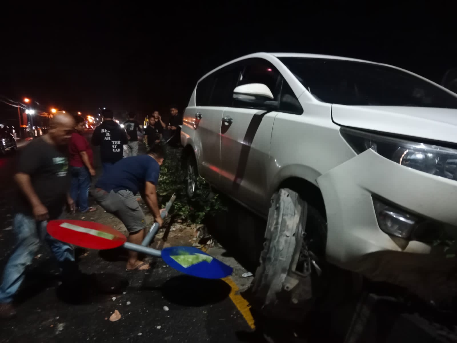 “Saya seketika banting stir ke kanan karena di pepet mobil sedan toyota putih,” terang Roby.