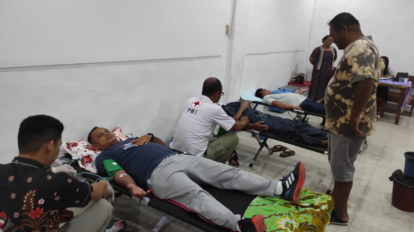 Rangkaian kegiatan sosial tersebut yakni berbagi kasih paket sembako dan donor darah dipusatkan di gedung serba guna Gereja HKBP Kota Tanjungbalai Jalan Kapten Pierre Tendean, Sabtu (16/12/2023).