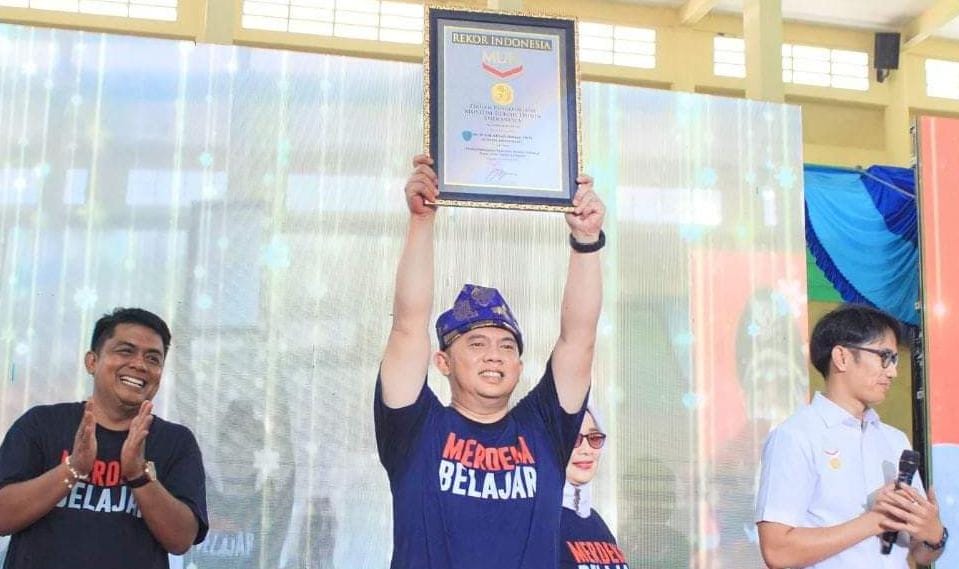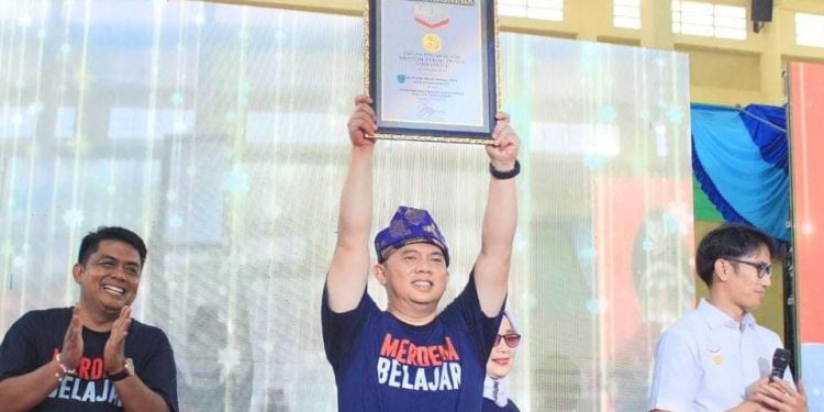 TASLABNEWS.COM, LABUHANBATU – Pemerintah Kabupaten Labuhanbatu pecahkan rekor Musium Rekor Dunia Indonesia (MURI) di bidang pendidikan untuk kategori membuat produk pembelajaran kurikulum merdeka oleh pelajar terbanyak di Gedung Olahraga Rantauprapat, Sabtu (9/12/2023).