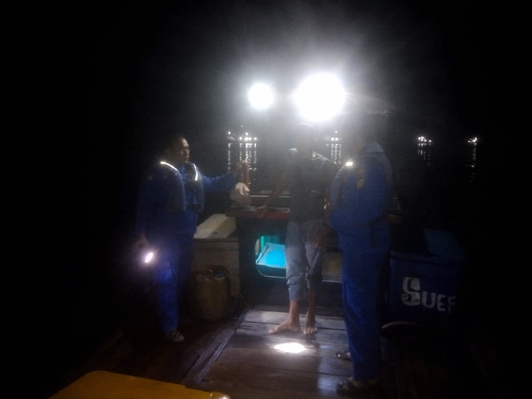 “Dari hasil pemeriksaan diketahui bahwa kapal yang tidak memiliki nama dan tanda selar itu dinakhodai oleh Nasib dengan jumlah abk/penumpang 4 orang itu bermuatan fiber berisi ikan namun tidak ada di temukan barang-barang ilegal atau yang melanggar hukum.