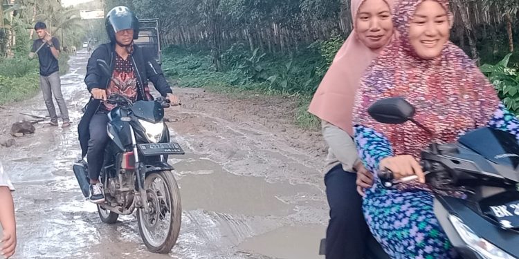 Dari pantuan taslabnews, jalan yang setiap hari di lalui salah satu anggota dewan tersebut yakni Purnama Sihombing ketika musim hujan bak kubangan lembu. (Edi/Syaf)