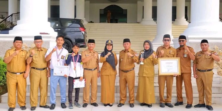 Penghargaan Bidang Pemberdayaan Perempuan dan Perlindungan Anak (P3A) dari Gubernur Sumatera Utara yang diserahkan kepada Kepala Dinas P3A Kota Tanjungbalai, Hj Milfa.