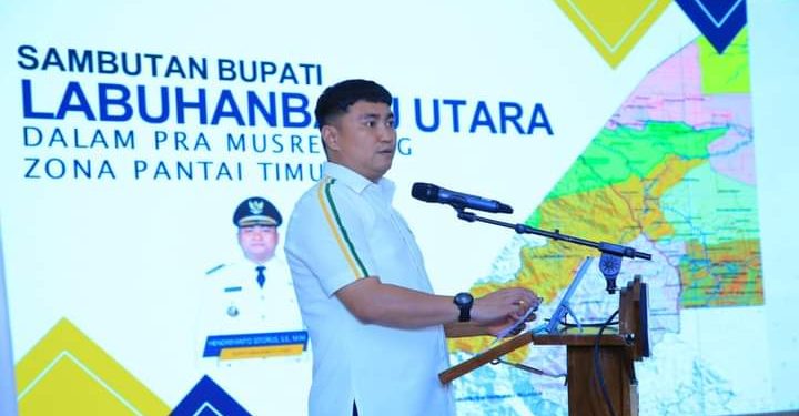 TASLABNEWS, LABURA -Bupati Labuhanbatu Utara (Labura), Hendriyanto Sitorus, S.E, M.M, mengikuti Pra Musyawarah Perencanaan Pembangunan Rencana Kerja Perangkat Daerah (Musrenbang RKPD) Provinsi Sumatera Utara Tahun 2025 zona Pantai Timur.