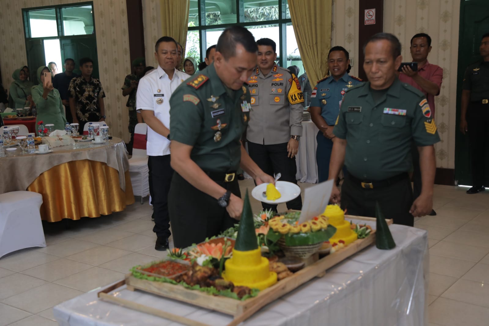 Kegiatan dirangkai juga dengan pemotongan tumpeng oleh Dandim 0208/Asahan disaksikan oleh Wakil Bupati Asahan, Pj Bupati Batu Bara, mewakili Walikota Tanjung Balai, Ketua DPRD Kabupaten Asahan, Ketua DPRD Tanjung Balai, Dandim 0208/Asahan, Danlanal TBA, Danyon 126/KC, Kapolres Asahan, Kapolres Batu Bara, Ketua PN Kisaran, Ketua PA Kisaran, Kajari Asahan, Kajari Batubara, Jajaran Kodim 0208/Asahan, Persit Kartika Chandra Kirana Cabanga XXXV Dim 0208 Asahan dan tamu undangan lainnya. (rel/mom)