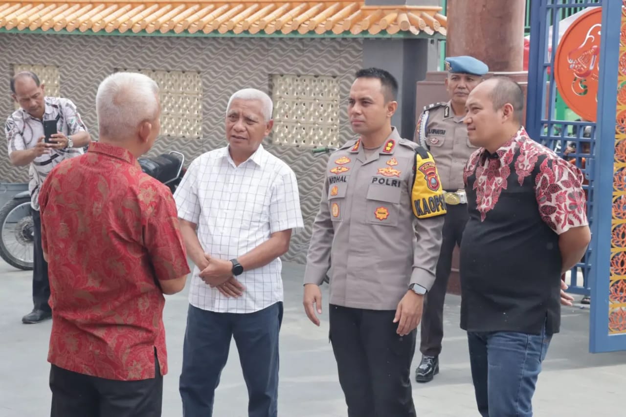 TASLABNEWS, ASAHAN-Kapolres Asahan AKBP Afdhal Junaidi, SIK, MM, MH bersama Bupati dan unsur forkopimda mengecek pengamanan dan keamanan perayaan Tahun baru Imlek 2024 di Vihara dan Klenteng yang ada di Kota Kisaran, Sabtu (10/02/2024).