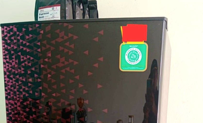 Pemilik Cafe mengatakan bahwa label halal tersebut sudah ada sejak dirinya membeli kulkas tersebut.