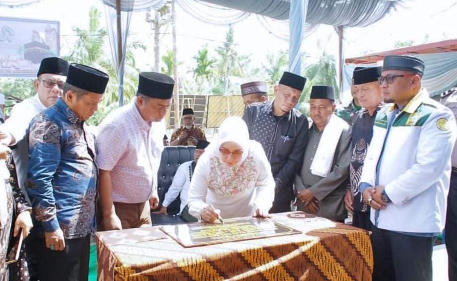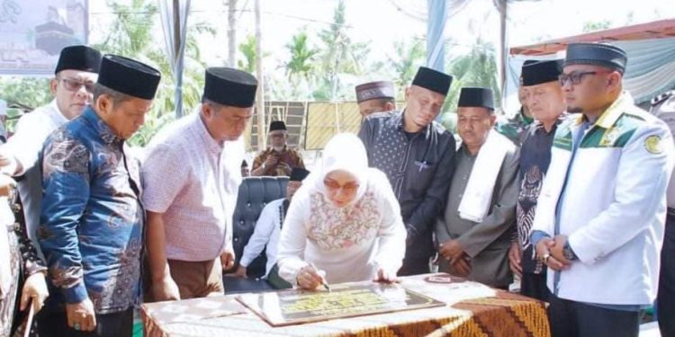 TASLABNEWS.COM, LABUHANBATU – Plt. Bupati Labuhanbatu Hj. Ellya Rosa Siregar, S.Pd., MM meresmikan pembangunan Masjid An-Nurani sekaligus menghadiri acara peringatan Isra Miraj 1445 H di halaman masjid An-Nurani, Desa Sungai Merdeka, Kecamatan Panai Tengah, Sabtu (24/02/2024).