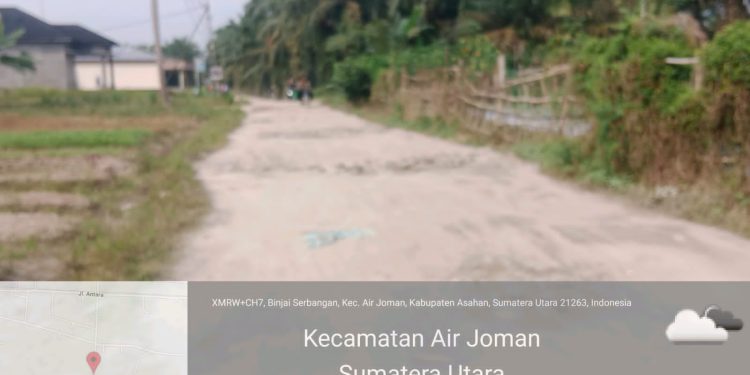 TASLABNEWS, ASAHAN-Warga meminta perbaikan jalan Pantai Rexsona di Lingkungan 10, Kelurahan Binjai Sebrangan, Kecamatan Air Joman, Kabupaten Asahan, Sumut segera dapat terlaksana.