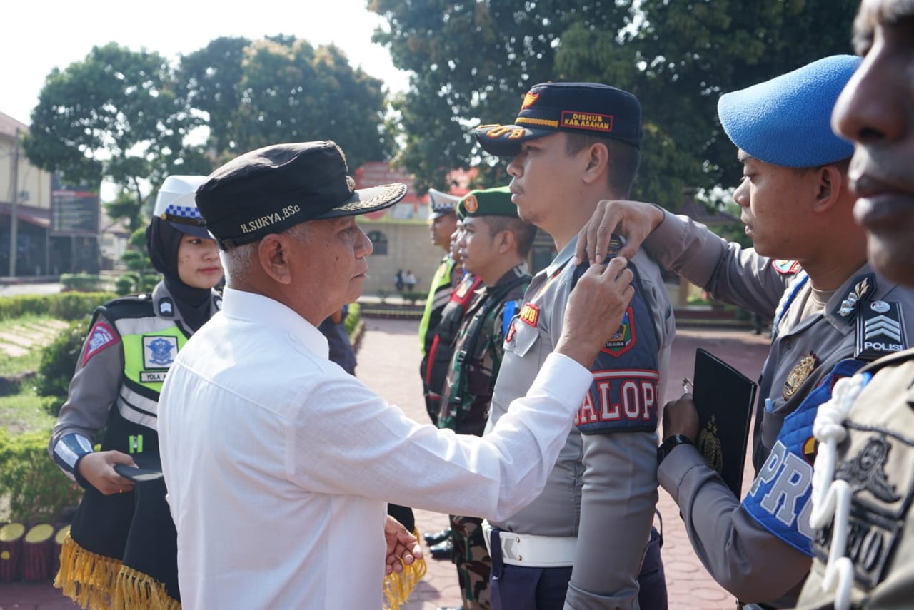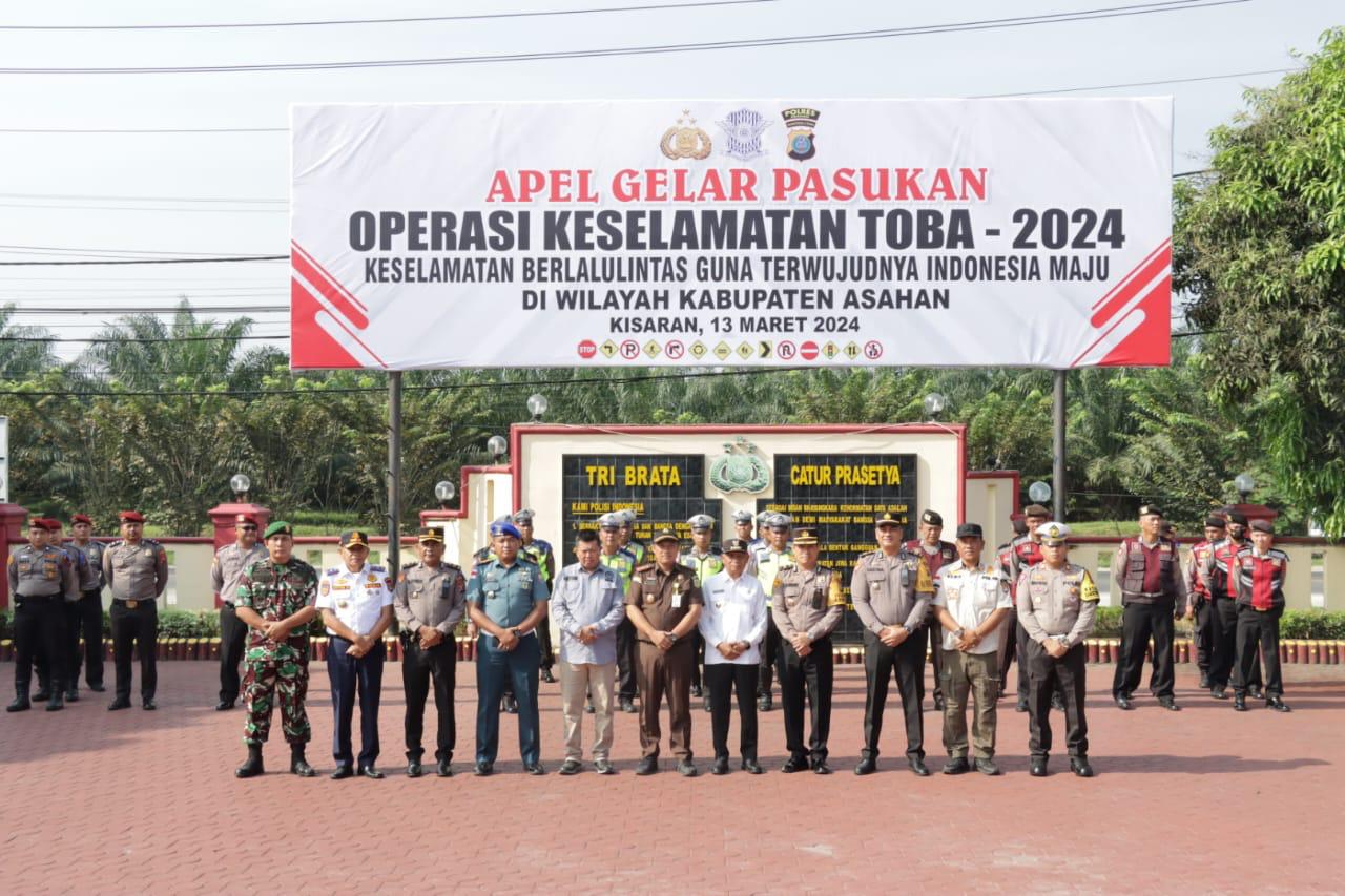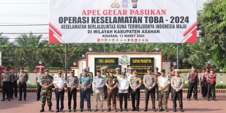 TASLABNEWS, ASAHAN – Bupati Asahan H. Surya BSc memimpin Apel Gelar Pasukan OPS Keselamatan Toba 2024 di halaman Polres Asahan, Rabu (13/03/2024).