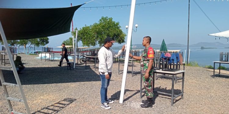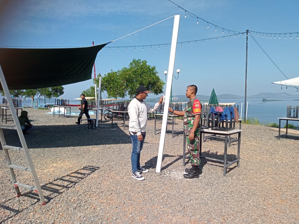 SIBOLGA, TASLABNEWS – Mendukung usaha warga binaan, Serda Erwan Hutagalung turut membantu mendirikan tenda yang bakalan dijadikan lapak warung. Berlokasi di Bukit Panomboman Kelurahan Sibolga Ilir, Kecamatan Sibolga Utara, Kota Sibolga.