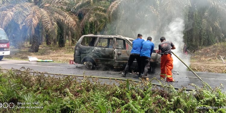 TASLABNEWS, ASAHAN-Satu unit mobil terbakar di jalan Besar Tanah Rakyat, Desa Tanah Rakyat, Kecamatan Pulau Bandreng, Kabupaten Asahan, Sumatra Utara, Minggu (24/03/2024) sekitar jam 13.10 WIB. Beruntung dalam kejadian tersebut tidak ada korban jiwa dalam peristiwa itu.