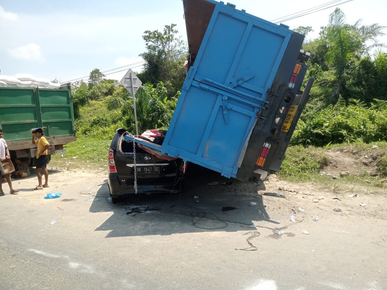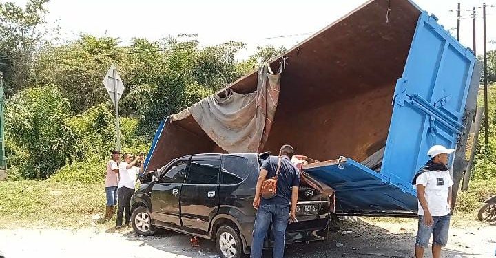 “Dugaan sementara dari keterangan sopir, bahwa rem dari mobil truk tronton ini tidak berfungsi baik (blong), sehingga menabrak mobil Minibus Toyota Calya BK 1133 VP yang di depanya dan beruntun,” katanya Iptu Jefri