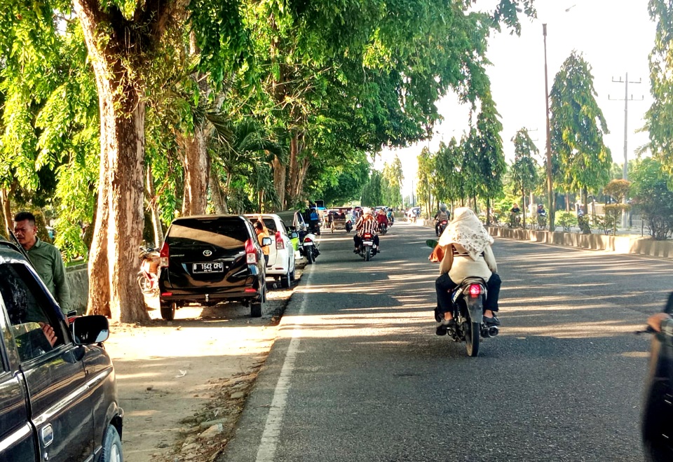 Bahkan para juru parkir terlihat mengarahkan untuk memperkirakan sepeda motor di atas jembatan yang menuju hutan kota.