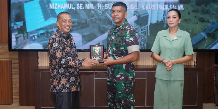 TASLABNEWS, ASAHAN – Bupati Asahan yang di Wakili oleh Asisten Pemerintahan dan Kesejahteraan Rakyat Buwono menyerahkan plakat Kepada Komandan Korem (Danrem) 022/Pantai Timur di Aula Kodim 0208/AS, Kamis (18/04/2024).