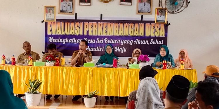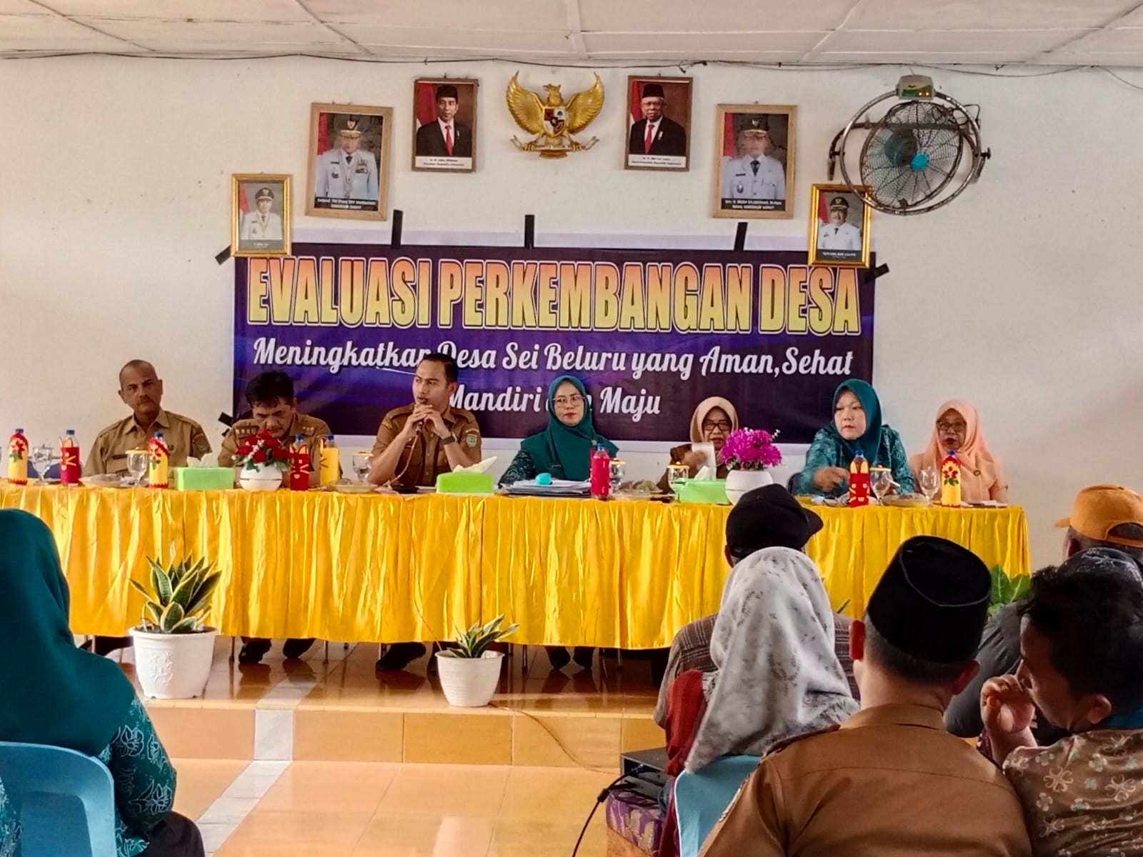 TASLABNEWS, ASAHAN-Tim Monitoring evaluasi perkembangan Desa yang di pimpin oleh Dinas PMD Asahan yang di dampingi oleh Dinas Kesehatan, Dinas Pendidikan dan Kebudayaan, Dinas P2KB3P serta Tim PKK Kabupaten Asahan melakukan monitoring perkembangan desa di kecamatan Meranti tepatnya di Desa Sei Beluru, Kabupaten Asahan, Sumatra Utara, Selasa (23/4/2024).