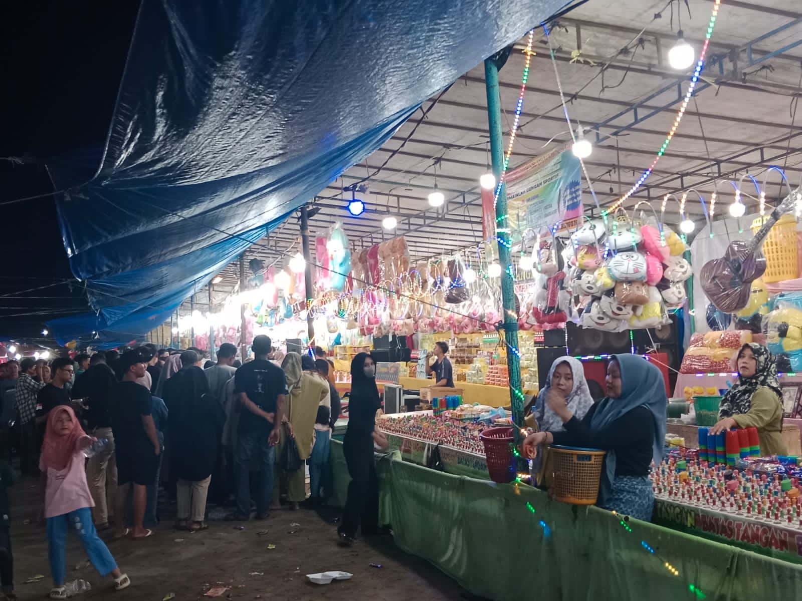 “Baru kali ini datang ke pasar malam. Mana sanggup sering datang, saya mau karena menuruti anak yang nangis meminta ke sini,’ terangnya.