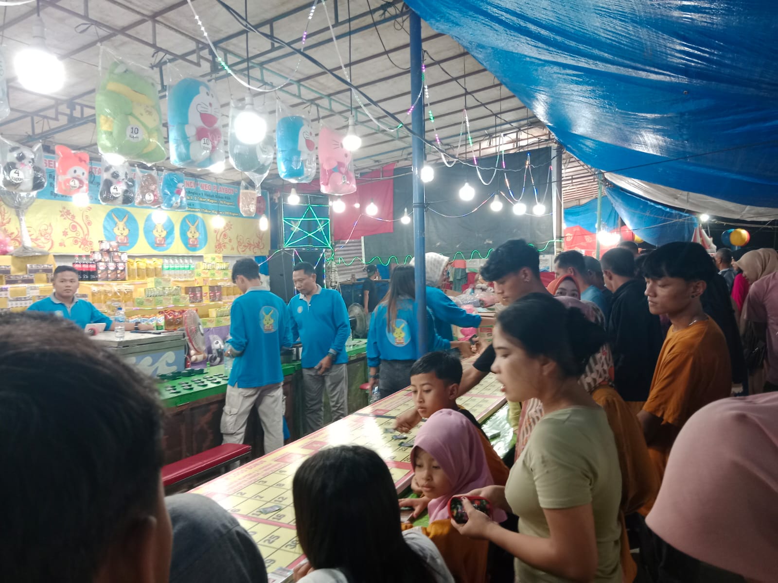 Diketahui Bowling tebak nomor dibandrol Rp5 ribu mendapat 3 koin, sedangkan gelang dalam permainan lempar gelang dibandrol Rp5 ribu per 4 gelang.