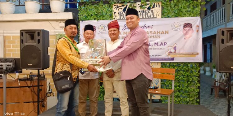 TASLABNEWS, ASAHAN-Dua wartawan Taslabnews yakni Syafruddin Yusuf dan Edi Surya mendapat cenderamata berupa parcel di acara silahturahmi Puak Melayu Asahan bersama tokoh masyarakat Asahan mas Arianto, SH MAP di cafe Barbara jalan Diponegoro Kisaran Barat, Kabupaten Asahan, Sumatra Utara, Minggu (7/4/2024).