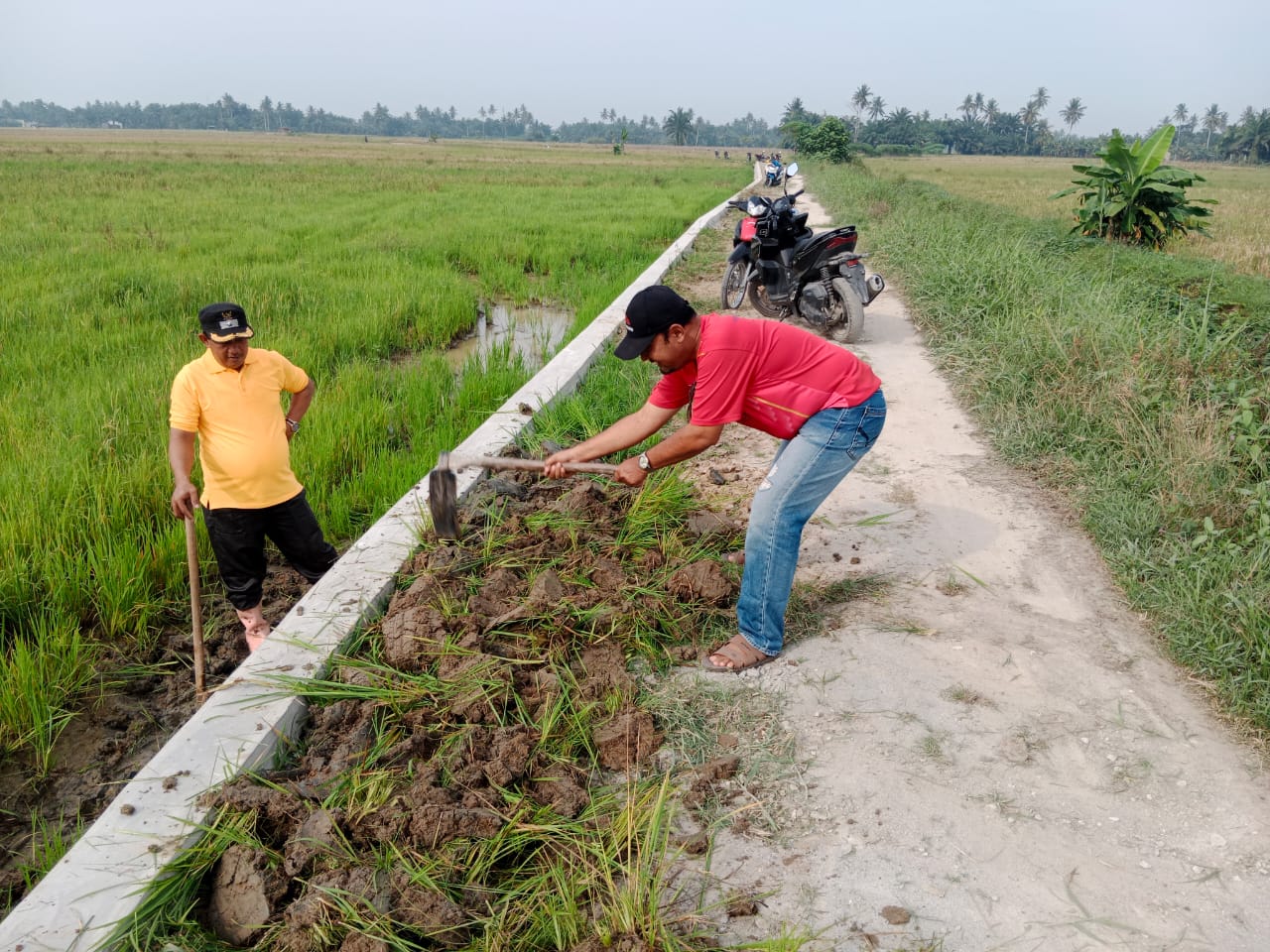 TASLABNEWS, ASAHAN-Sebagai wujud kepedulian terhadap Akses Jalan dan lingkungan desa, Kepala Desa Serdang, Kecamatan Meranti, Kabupaten Asahan Sumatra Utara Guntur Gunawan memimpin kegiatan gotong royong.