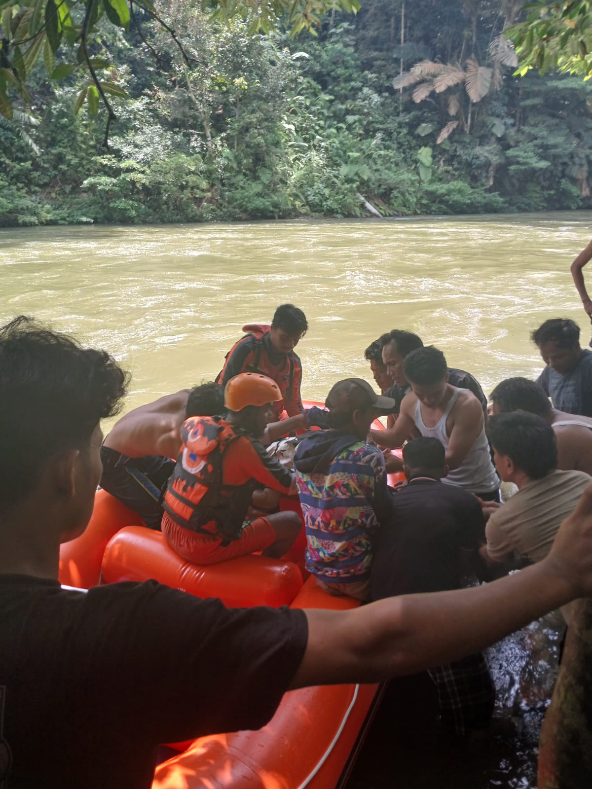 Satu di antaranya hanyut terbawa arus, yakni bernama Ibnu Harianda. Menurut warga sekitar, 7 orang berhasil selamat.
