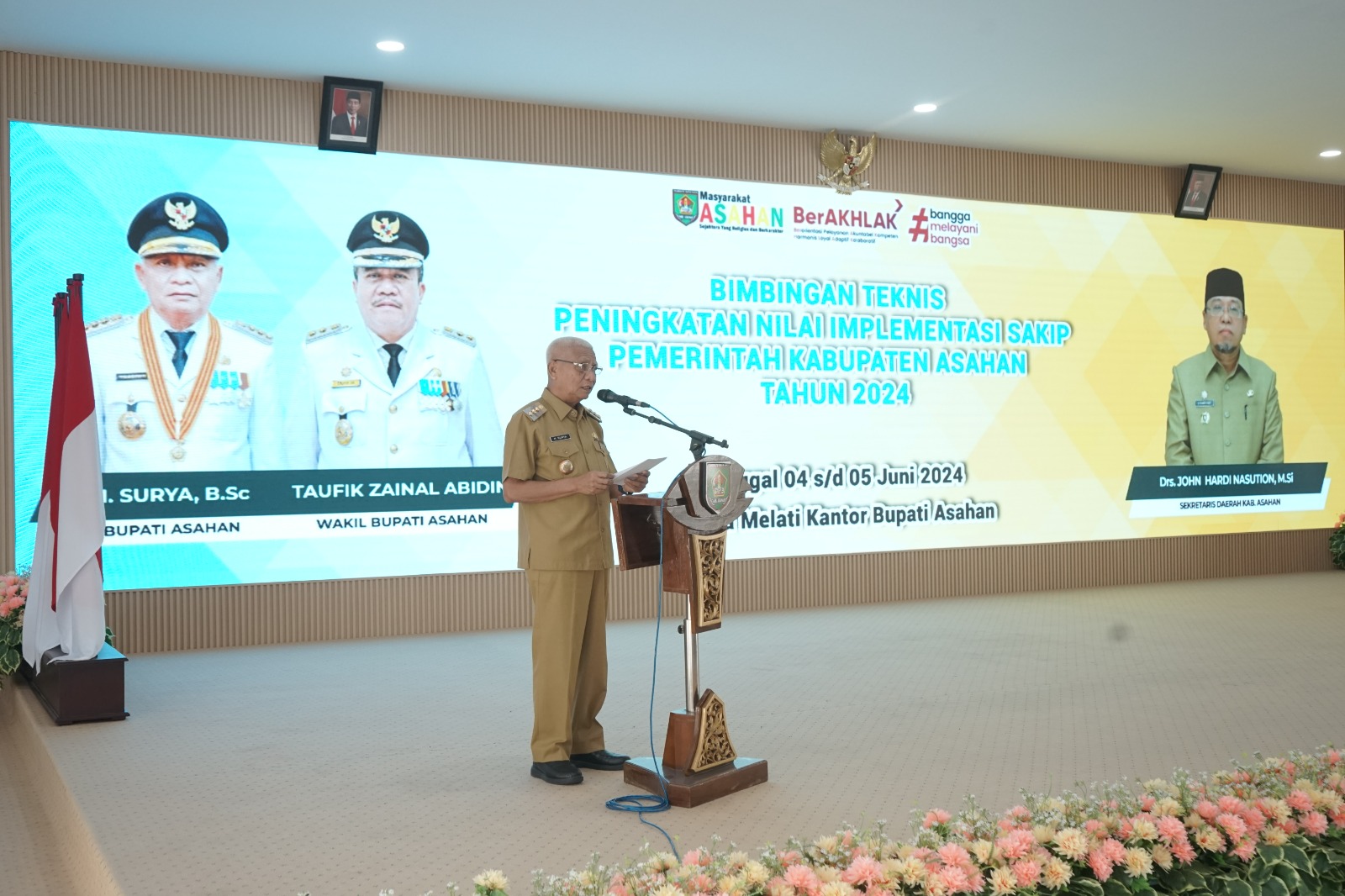 TASLABNEWS, ASAHAN – Bupati Asahan, H Surya BSc membuka secara langsung bimbingan teknis peningkatan nilai implementasi Sakip Pemerintah Kabupaten Asahan di Aula melati Kantor Bupati Asahan, Selasa (04/06/2024).