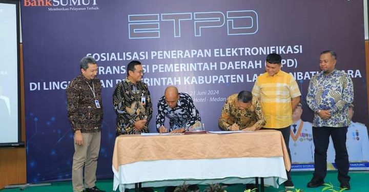 TASLABNEWS, LABURA-Bupati Labuhanbatu Utara (Labura), Hendriyanto Sitorus SE MM mendukung penuh penerapan Elektronifikasi Transaksi Pemerintah Daerah (ETPD) di Kabupaten Labura sebagai upaya guna percepatan transformasi digitalisasi daerah.