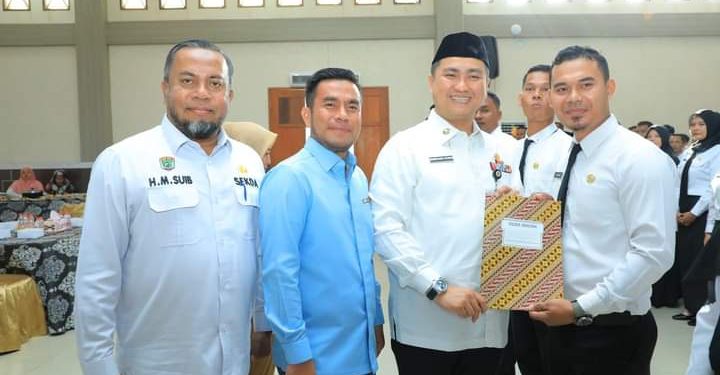 TASLABNEWS, LABURA-Bupati Labuhanbatu Utara Hendriyanto Sitorus, SE MM melakukan pelantikan dan pengambilan sumpah/janji dan penyerahan Surat Keputusan Pengangkatan Pegawai Pemerintah Dengan Perjanjian Kerja (PPPK) Jabatan Fungsional Guru dan Jabatan Fungsional Tenaga Kesehatan Formasi tahun 2023 di lingkungan Pemerintah Kabupaten Labuhanbatu Utara di Aula Ahmad Dewi Syukur, Rabu (5/6/2024).