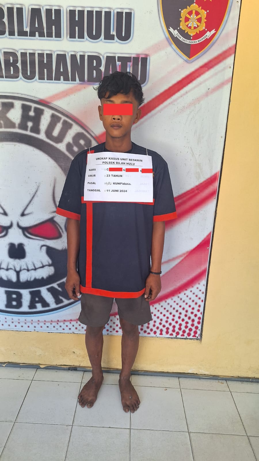 Hingga pada hari Selasa tanggal 11 Juni 2024 sekira pkl 10.00 Wib petugas berhasil menangkap pelaku pria berinisial MA dirumahnya di Dusun Sri II Desa Pematang Seleng Kec.Bilah Hulu Kab. Labuhanbatu.