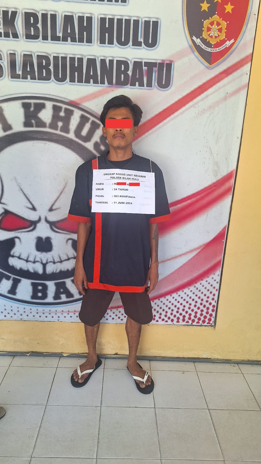Kapolres Labuhanbatu AKBP Dr Bernhard L. Malau, SIK, MH melalui Kasi Humas Iptu Parlando Napitupulu kepada wartawan, Selasa (11/6/2024) mengatakan bahwa pihak mendapatkan laporan pada hari Kamis tanggal 06 Juni 2024 sekira pukul 17.00 Wib di Perkebunan P3RSU Desa Pematang Seleng Kec. Bilah Hulu Kab. Labuhanbatu telah terjadi pencurian barang milik korban bernama Sarimin.