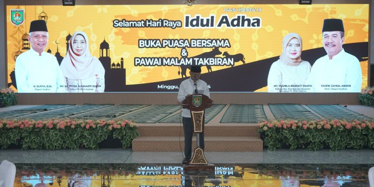 Menutup pidatonya Bupati Asahan H. Surya, B.Sc mengucapkan selamat merayakan Idul Adha 1445 H/2024 M, Semoga spirit dan nilai-nilai positif dibalik hari raya tahun ini dapat menjadikan diri kita lebih baik disisi Allah SWT.